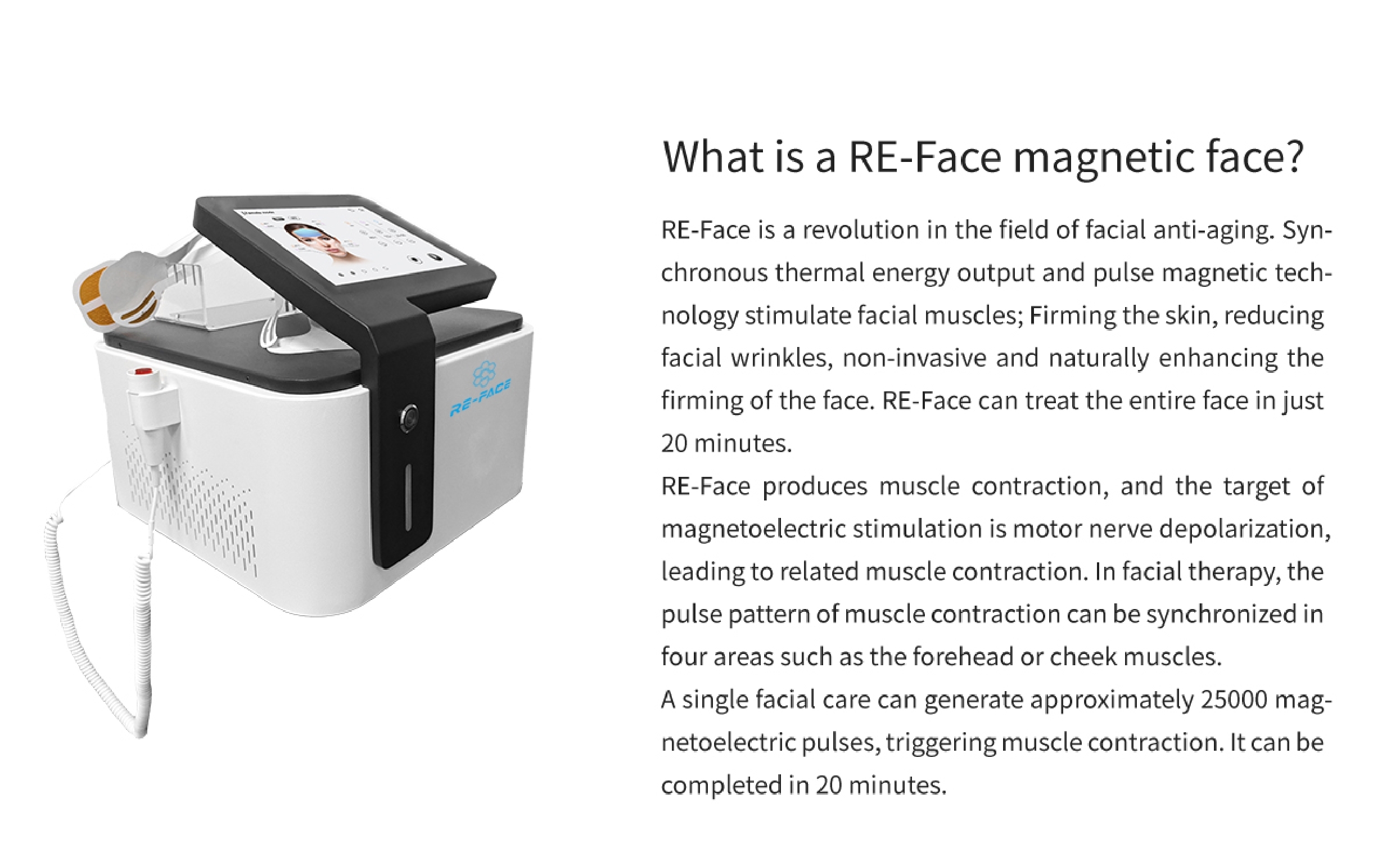The RET-Face is a revolutionary facial treatment device using high-frequency magnetic RF technology. It stimulates collagen regeneration, lifts sagging skin, and improves skin firmness—all without surgery or downtime.