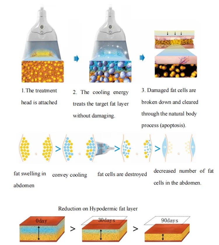360 cryolipolysis can treat any area at any angle. 360 cryolipolysis generates stable, but powerful cooling energy into the patient's subcutaneous fat deposits to induce apoptosis (fat cell death), disposing of dead fat cells through the body's metabolism.