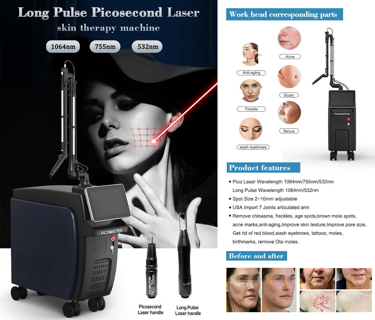 Wavelengths: 532nm, 1064nm, 755nm (Triple Wavelengths for Versatility)