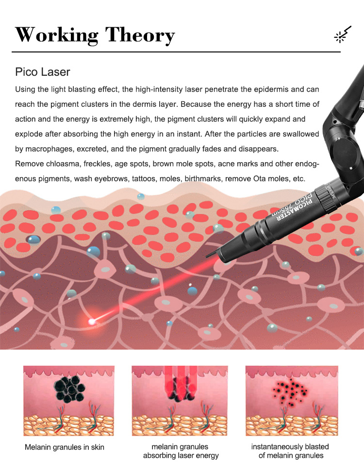 The laser delivers ultra-short pulses of light to the skin, which target the pigment or tattoo ink. The fast pulse duration causes the pigment to shatter into tiny particles, which are then naturally eliminated by the body's immune system. This is a faster and more effective method compared to traditional lasers, as it reduces the risk of heat damage and minimizes the number of treatments required.